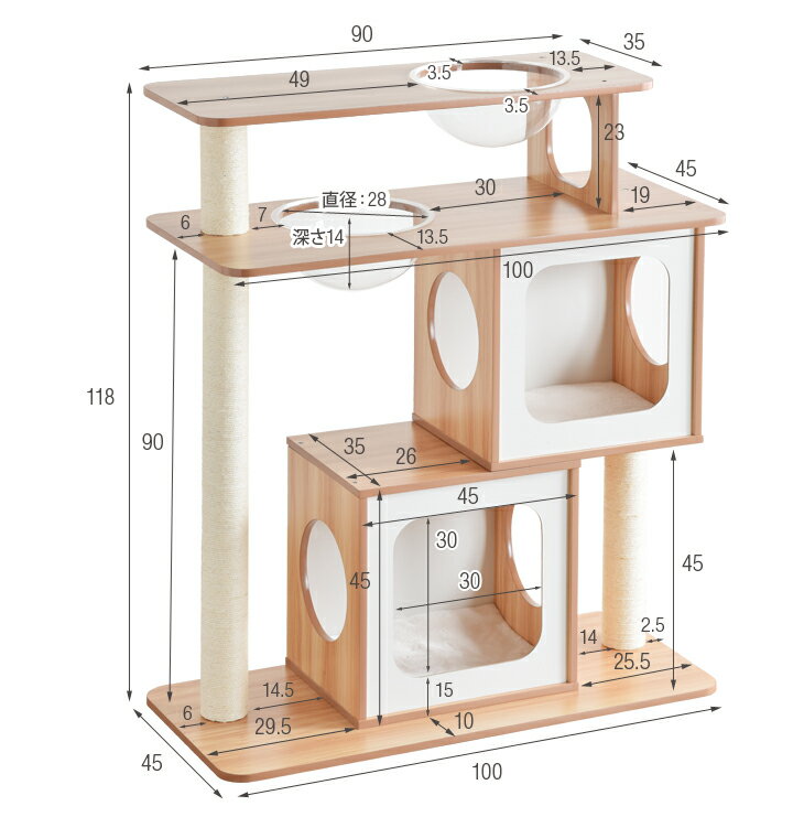 *ハピネコ ライフ* シリーズ ▼ 据え置き型 ワイドタイプ ▼ ▼ 突っ張り型 ハイタイプ ▼ 高さ 120cm幅 145cm 高さ230〜253cm幅160cm 仕様 サイズ 外寸:幅100×奥行45×高さ118cm重量:31kg 【スタッフえくぼのおすすめポイント!】 ・ネコちゃんの肉球も見える ボウル付きのキャットタワー! ・ここでしか買えない 当店オリジナルデザイン ・ボウルは取り外しOK!洗えるのでいつでも清潔 ・板面はキズや汚れに強くお手入れラクラク ・頑丈な板材づくりなので安定感も抜群 ・インテリアとしてもお部屋に馴染むおしゃれデザイン ・背面までこだわったデザインだから間仕切りとしても ・ふわふわのボックス用クッション付き ・支柱は爪とぎできる麻紐仕様 素材 支柱 : 紙管、麻紐板材 :プリント化粧繊維板塗装:ラッカー塗装ボウル:アクリル樹脂 梱包サイズ 部品の破損対策の為、3小口でお届けします ・105×56×10cm 17kg・47×22×46cm 16.2kg・31×31×20cm 1.3kg 生産国 中国 送料 【送料無料(北海道・沖縄県・離島は送料別途)】 ※北海道・沖縄県・離島の場合はお問い合わせください。