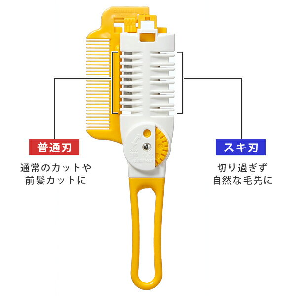 クシ目が違う2WAYタイプのヘアカッター左右のクシ目が違う普通刃とスキ刃のツーウェイタイプです。