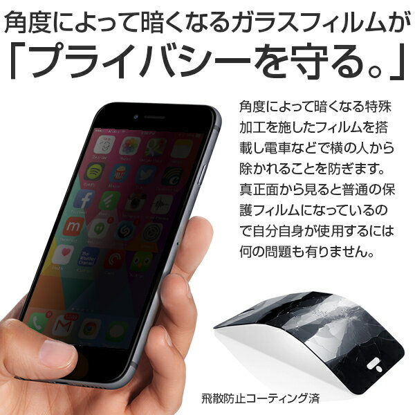 商品名称iPhone6/6s Plus 覗き見防止&強化ガラスフィルム適応機種iPhone6/6s Plusバリエーション覗き見防止クリア素材覗き見防止特殊フィルム配合多重層PET商品説明「傷」からも「覗き見」からも守る角度によって暗くなる特殊加工を施したフィルムを搭載し電車などで横の人から除かれることを防ぎます。