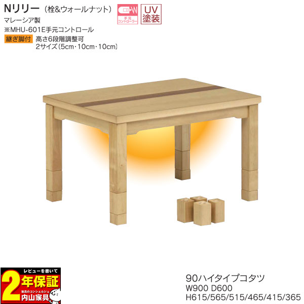 ◆◇送料無料◇◆ 【ダイニングコタツ3点セット】 ハイタイプ&ロータイプ 90×60高脚用 ■セット内容 コタツ:Nリリー ×1台 チェアー:UKC-710 ×1脚 布団:90×60高脚用 ×1枚 ■材質 栓・ウォールナット ■サイズ コタツ:幅120cm×奥行60cm ×高さ61.5cm/56.5cm/51.5cm/46.5cm/41.5cm/36.5cm チェアー:幅59cm×奥行57cm〜105cm×高さ70cm〜98cm (座面高39cm/42cm/45cm) 布団:幅240cm×奥行210cm ■カラー チェアー:NA・BR 布団:UKH-35・UKH-43 ■特徴 コタツ ・UV塗装 ・継脚付(2サイズ:5cm・10cm・10cm) ・3つの継ぎ脚を組み替える事で全6段階まで調節可能 ・MHU-601E手元コントロール チェアー ・背もたれレバー式8段階リクライニング仕様 ・肘付/下台カバー取り外し可能 布団 ・アルミシート入 ・天板固定用穴あり ※注文時にご希望の項目選択情報を選択してください。